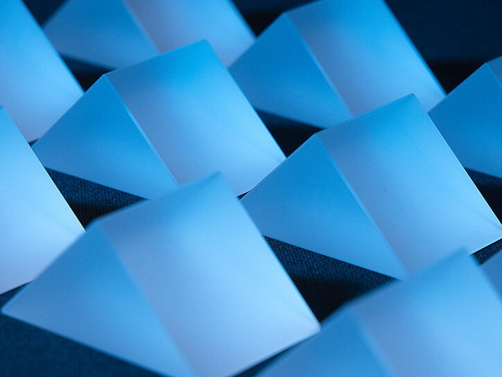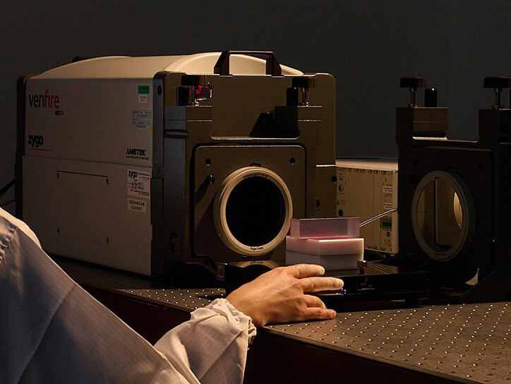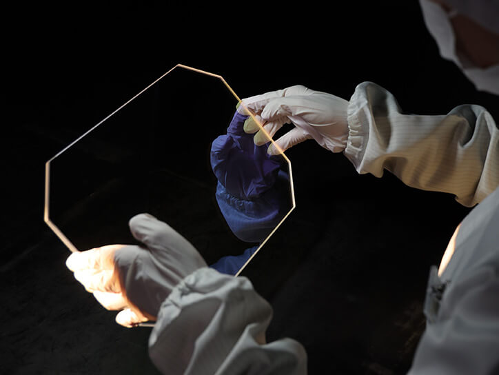From prototype design and the selection of materials, in all processes of material procurement and inspection, grinding, polishing, coating (vacuum deposition/sputtering), bonding, cutting, cleaning, micro-patterning and optical system assembly, an integrated production system to achieve short lead time is established, and quality assurance is conducted on all production processes.