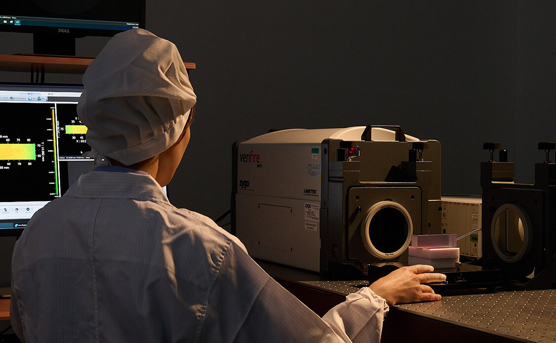 NITTO OPTICAL has various inspection equipment, measuring instruments and testing devices are deployed to evaluate quality in each step, and defective products are prevented from flowing to the next process in advance.