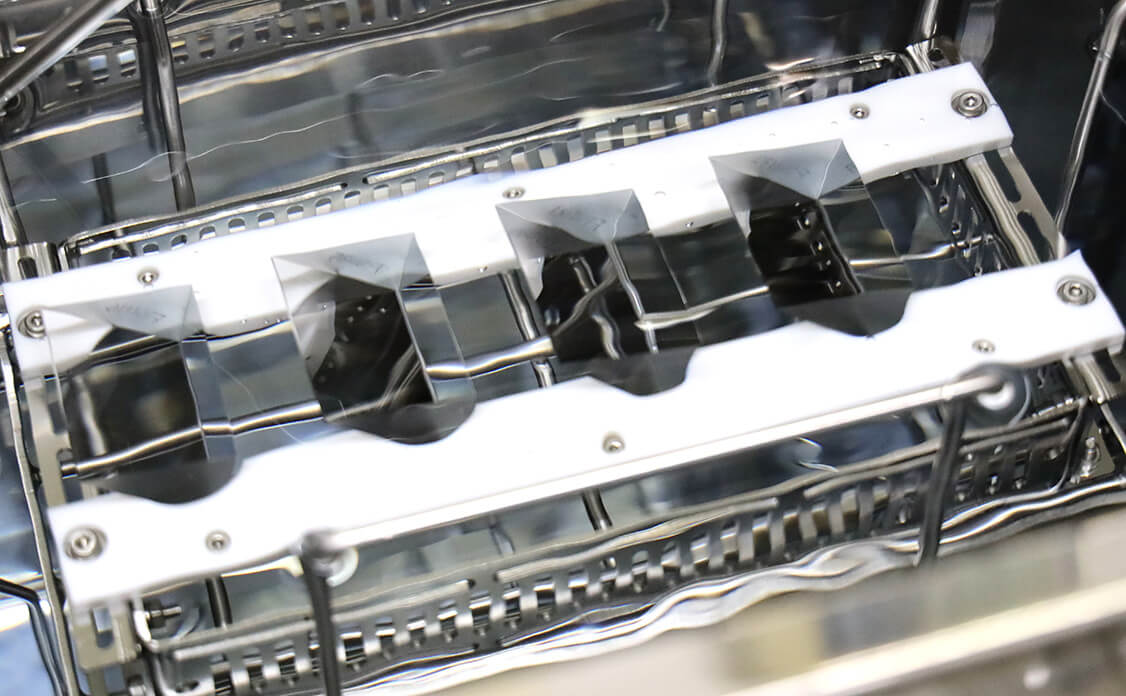 The point of the cleaning process is to remove residue such as glass particles, grinding fluid and polishing agents, etc. and organic dirt that stick to optical parts generated in the grinding/ polishing process to improve following thin film coating process.