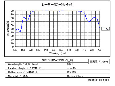 レーザーミラーは、高反射ミラーとして主に利用されますが、反射効率は自由に設定でき、最高でR(反射率)=99.9%を実現しています。
