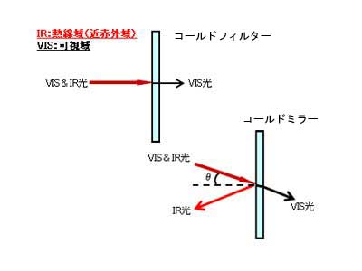 IRカットフィルターは、赤外線領域をカットして可視域の波長を透過させる膜で、コールドフィルターと同様の特性を有します。