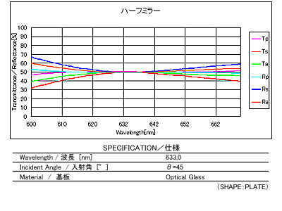 ハーフミラーは、一般的に透過:反射=1:1の光量に分岐する光学素子であり、光通信や3Dディスプレイなどの分野ではビームスプリッターと同じ用途で使用されることがあります。