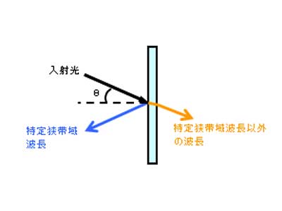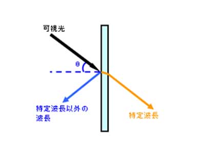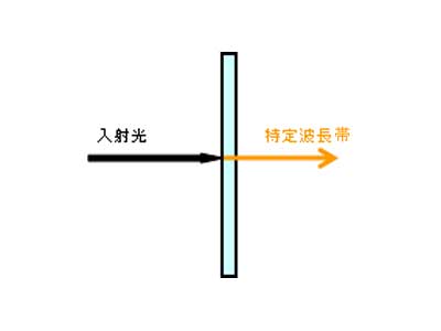 干渉フィルターは、光の波長程度の厚さの透明膜で生じる干渉を利用して、所定の波長領域の光を透過、または反射させるフィルターです。高精度な波長選択が可能で、分光計測に使用されます。