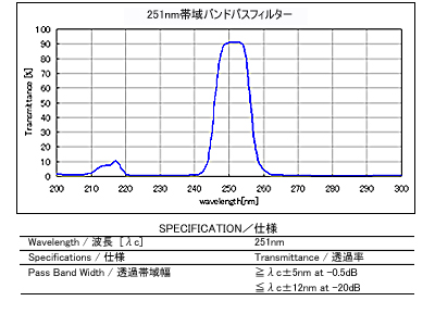 251nm帯域バンドパスフィルター251nm Band Pass Filter