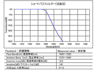 ショートパスフィルター(SWPF)は、短波長を透過し長波長を反射します。任意の波長に対してシャープな分光特性を有します。