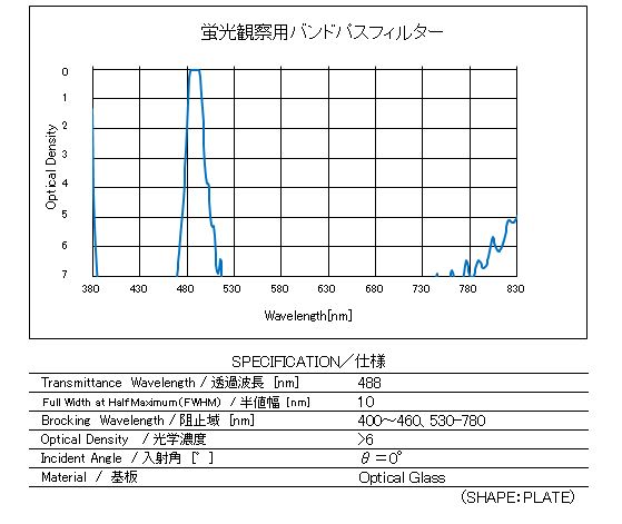 分光特性・スペック4 蛍光観察用バンドパスフィルター