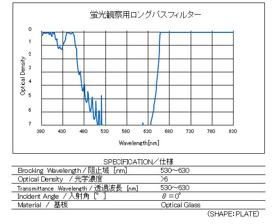 分光特性・スペック5 蛍光観察用ロングパスフィルター