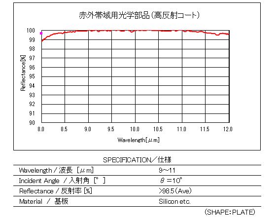 赤外帯域用光学部品(高反射コート)は、赤外帯域用に設計された高反射ミラーです。赤外線を用いたアプリケーションに幅広く応用する事が可能です。