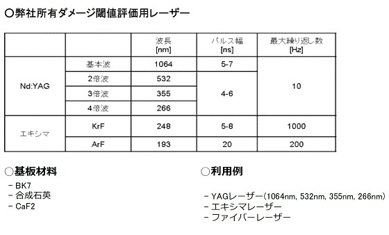 エキシマレーザー用多層膜ミラーLaser Mirror for Excimer Laser