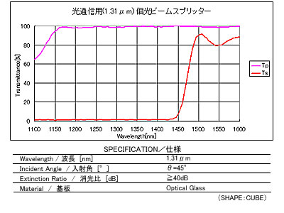 光通信用(1.31μm)偏光ビームスプリッターPolarizing Beam Splitter Cube for Optical Communications(1.31μm)