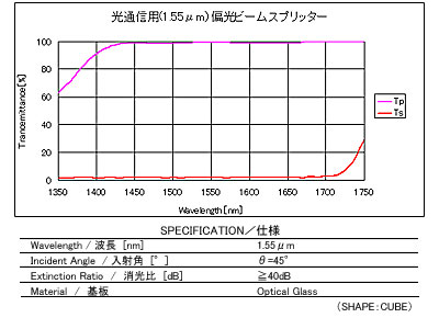 光通信用(1.55μm)偏光ビームスプリッターPolarizing Beam Splitter Cube for Optical Communications(1.55μm)