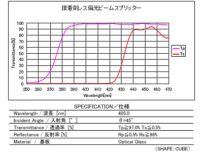 青色レーザー用偏光ビームスプリッターPolarizing Beam Splitter Cube for Blue Laser