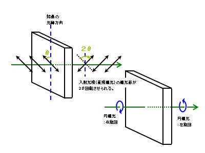 波長板(λ/2板)は、互いに垂直な方向に振動する偏光の光路差を1/2波長変化させる機能がある位相板です。