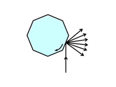 ポリゴンミラーは、周囲に一連の平面反射面を持った回転多面体ミラーです。走査される物体上に光源からの光を反射します。レーザープリンターなどで使われます。