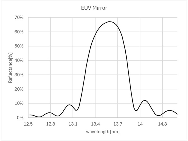 EUV用ミラーは、極端紫外線(EUV:波長約13.5nm)の反射に特化した多層膜構造の光学素子です。モリブデン(Mo)とシリコン(Si)などの材料を交互に積層することで、特定波長に対する反射率を最大化します。